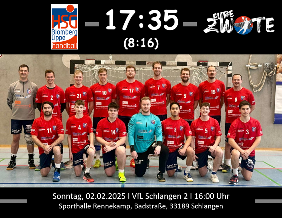 So geht’s weiter: Das nächste Auswärtsspiel für die ZWOTE steht am Sonntag, 02.02.2025 in Schlangen Sporthalle Rennekamp, Badstraße; 33189 Schlangen) um 16:00 Uhr auf dem Programm! In der Schulsporthalle konnte sich die ZWOTE am Ende deutlich (28:19) durchsetzen, allerdings trat der VfL nur mit kleinem Kader an. Ohne Harz gilt es am Sonntag im Angriff sehr diszipliniert bis zur Chance aus der Nahwurfzone zu spielen. Mit einer erneut guten Abwehrarbeit will die ZWOTE unbedingt beide Punkte mit in die Eggegemeinde bringen!