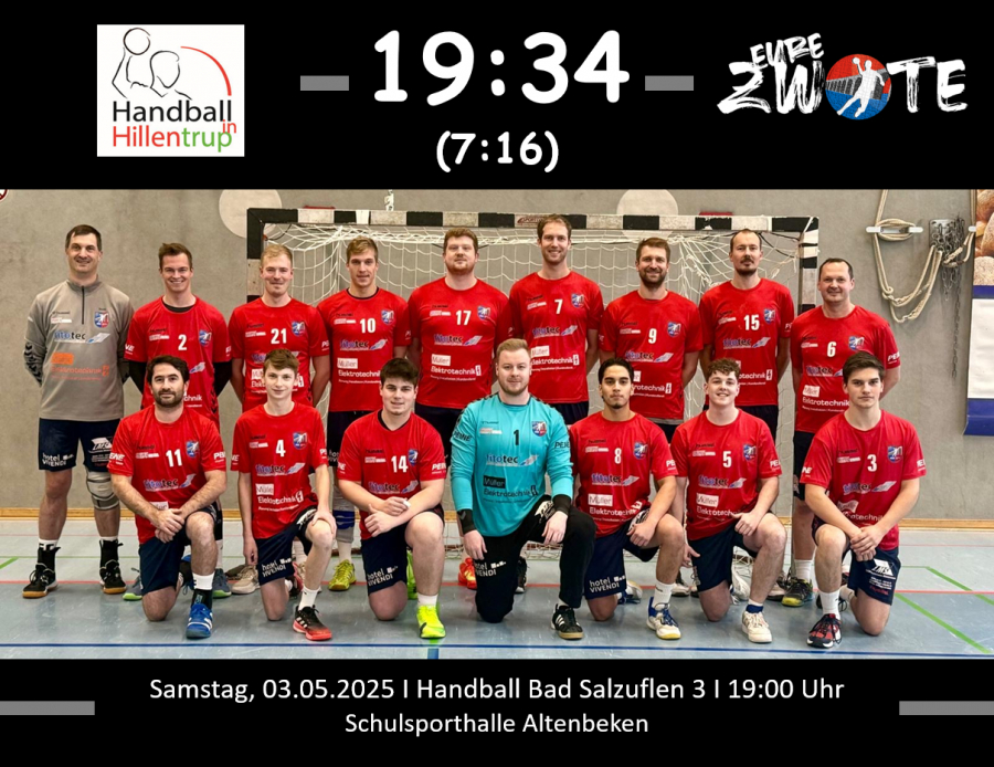 So geht’s weiter: Das vorletzte Heimspiel der Saison 24/25 bestreitet die ZWOTE am Samstag, 3. Mai, um 19:00 Uhr gegen Handball Bad Salzuflen 3. Am Donnerstag, 08. Mai, empfängt die ZWOTE den TuS Brake/Lippe 2 um 20:30 Uhr zum letzten Heimspiel der Saison.