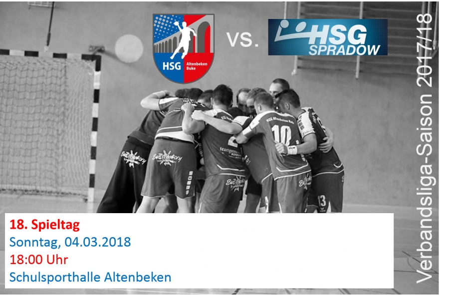 Am 18. Spieltag der Verbandsliga-Saison 2017/18 trifft die HSG Altenbeken/Buke auf die HSG TuS/EK Spradow. Das Heimspiel gegen die Gäste aus dem Kreis Herford im Nordosten von NRW (Karte) findet ausnahmsweise am Sonntag, 04. März, um 18 Uhr in der Schulsporthalle statt!