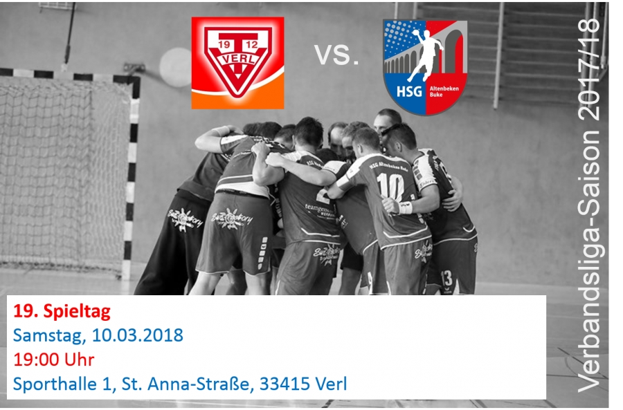 Für die HSG Altenbeken/Buke steht am 19. Spieltag der Verbandsliga-Saison 2017/18 ein richtungsweisendes Duell gegen den TV Verl auf dem Programm. Die Auswärtspartie im ostwestfälischen Verl (Karte) wird am Samstag, 10. März, um 19 Uhr angepfiffen.