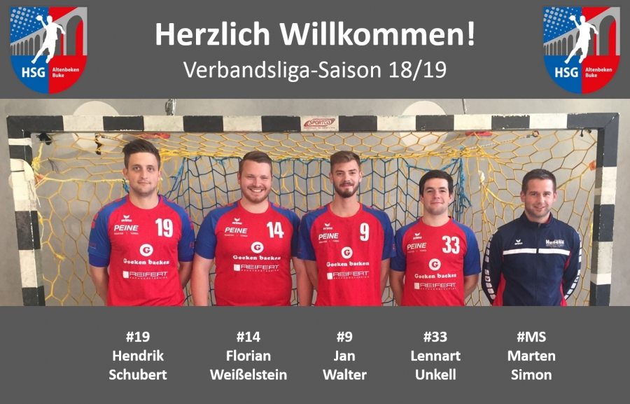 Bestens eingefügt haben sich bereits unsere Neuzugänge bzw. Rückkehrer: Nachdem Linkshänder Jan Walter bereits im letzten Heimspiel der letzten Saison sein 1. Spiel in der Verbandsliga für die HSG bestritten hat, trugen Lennart Unkell und Florian Weißelstein im ersten und nach 75 Minuten siegreichen Testspiel gegen den TSV Vellmar (Landesliga Hessen) zum ersten Mal das rot-blaue HSG-Trikot während Hendrik Schubert das HSG-Trikot nach einigen Jahren in Köln zum ersten Mal wieder überstreifte. Jan, Lennart, Florian und Hendrik werden im Laufe der Vorbereitung an dieser Stelle noch näher vorgestellt.