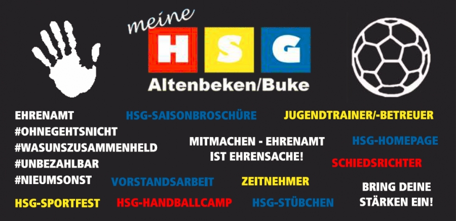 Die vielen Aufgaben, die in einem Verein wie der HSG anfallen, können dabei gewinnbringend nur im Team und verteilt auf viele Schultern, bewältigt werden. Menschen zu finden, die sich ehrenamtlich engagieren, wird dabei scheinbar leider immer schwerer. Wenn es darum geht, weitere Menschen für eine ehrenamtliche Mitarbeit zu gewinnen, stößt man bei den Angesprochenen oft auf eine ablehnende Haltung. Häufige Begründungen lauten: "Ich habe keine Zeit“ oder "Ich habe keine Ahnung davon“. Die Abwehrhaltung resultiert nicht selten aus einer gewissen Unkenntnis heraus: Was erwartet mich bei dieser Aufgabe? Wieviel Zeit muss ich investieren? Welchen Aufwand muss ich dafür betreiben?