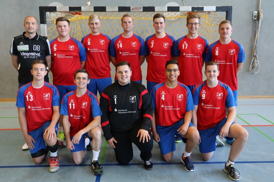 In dieser Saison kann die HSG endlich wieder eine mA-Jugend melden, was für die Philosophie des Vereins, den Kern der Seniorenmannschaften aus der eigenen Jugend zu generieren, ein enorm wichtiger Schritt ist! Aus der HSG-Jugend gehören in dieser Saison 8 Spieler den beiden Jahrgängen der A-Jug. an. Um eine spielfähige Mannschaft auf die Beine zu stellen, helfen mit Elias Grauer und Malte Filusch regelmäßig zwei Spieler aus der B-Jug. aus. Dazu wechselte Peer Ziemer von der HSG Paderborn-Elsen an den Viadukt und Julius Hanselle sowie Ole Löchelt vom VfL Schlangen spielen in dieser Saison mit einem Gastspielrecht in der Eggegemeinde. Damit hat die HSG eine A-Jugend mit viel Potential beisammen, die Trainer Dirk Block in dieser Saison noch prima weiterentwickelt. Die A-Jugend tritt in dieser Saison in der Kreisliga OWL an. Aufgrund der immer geringeren Zahl an Mannschaftsmeldungen in den verschiedenen Altersklassen haben die Handballkreise Lippe, Gütersloh, Bielefeld-Herford und Minden-Lübbecke in der mB- und mA-Jugend gemeinsame OWL-Kreisligen gebildet. Dementsprechend treffen unsere A-Jugendlichen dort in dieser Saison auf neue Vereine und neue Herausforderungen, die es zu meistern gilt! Die Mannschaft bedankt sich bei der Sparkasse Paderborn-Detmold als Trikotsponsor und bei Martin Fornefeld (Leinwandservice LMS) für die Aufwärmshirts!